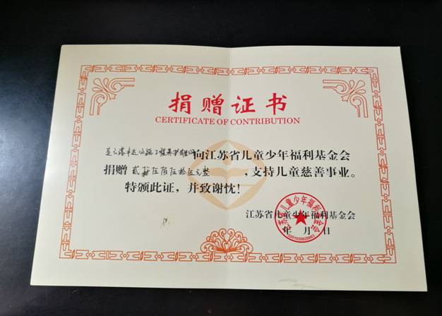 贈人玫瑰,手留余香;奉獻(xiàn)愛心,收獲希望。7月初,豐達(dá)公司廣大干部職工積極響應(yīng)省、市實(shí)施“脫貧攻堅(jiān)建檔立卡戶少兒病殘救助”項(xiàng)目的號召,踴躍捐款獻(xiàn)愛心。7月4號下午,公司將籌集的2555元善款直接送捐至連云港市婦聯(lián)家兒部,獲得了江蘇省兒童少年福利基金會授予的捐贈證書。今后,公司將繼續(xù)增強(qiáng)企業(yè)服務(wù)社會的能力,組織開展更多形式的公益活動,關(guān)愛社會弱勢群體,傳遞溫暖正能量。
