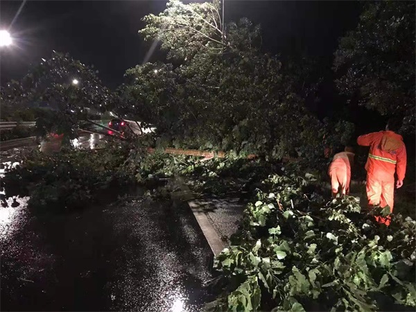 豐達(dá)公司市區(qū)養(yǎng)護(hù)分公司主要負(fù)責(zé)我市G310、G204、G311、G228、S242約200公里的國省干道管養(yǎng)工作。目前我市已進(jìn)入汛期,7月14日下午4時,一場狂風(fēng)暴雨突襲港城,公司“12345”應(yīng)急搶險人員立即開展巡查排險工作,311、204國道連續(xù)有樹木被大風(fēng)刮到在路邊,影響車輛、行人通行,搶險人員頂著狂風(fēng)暴雨,立即進(jìn)行排險工作,通過近7個小時的連續(xù)奮戰(zhàn),對20多棵倒伏樹木進(jìn)行清理,將斷樹斷枝運(yùn)離現(xiàn)場,將倒伏的樹木扶正,在最短時間恢復(fù)道路暢通,實(shí)實(shí)在在為群眾的安全出行辦實(shí)事。