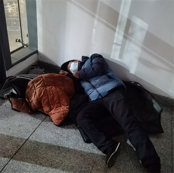 王祎為滯留人員發(fā)放簡(jiǎn)餐和宣傳防疫科學(xué)知識(shí)