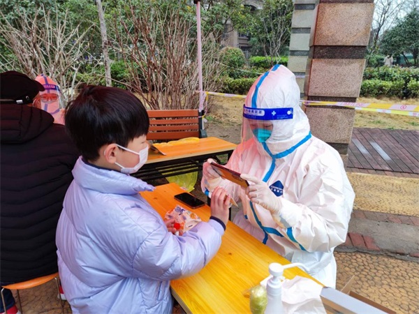 趙笑楠在孔望山社區(qū)為做核酸的人員查驗(yàn)身份證