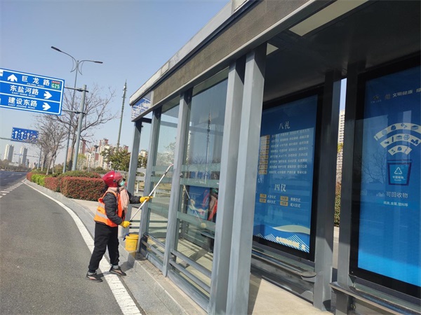 三是高要求做好環(huán)境衛(wèi)生管理工作。全力做好512座公交站亭、41.5對BRT站臺、10座公交場站、綜合客運樞紐及東鹽河口袋公園等的現(xiàn)場管理工作,由于范圍廣、客流量大、保潔任務(wù)重,公司進行定人定崗劃分區(qū)域負責環(huán)境衛(wèi)生,持續(xù)做好美化公交站臺環(huán)境、清理場區(qū)衛(wèi)生死角等工作。同時加強對站臺、場站的巡查,組織3組站臺維修小組和7組應(yīng)急處置小組機動巡查及快速處理突發(fā)情況,切實保障公交站臺及交通場站等的干凈整潔。