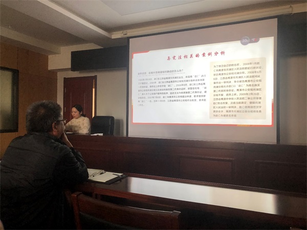 公司法務專員盧長敏以《大力弘揚憲法精神,建設社會主義法治文化》為主題,介紹了國家憲法日的由來、確立、目的和意義,憲法是什么,我國憲法的基本精神和特征,新時代如何弘揚憲法精神等,重點以齊玉苓受教育案、假冒基金公司網(wǎng)絡詐騙案等案例闡述了公民基本權利受到侵害時憲法救濟的重要性,讓大家進一步了解憲法、遵守憲法、維護憲法。