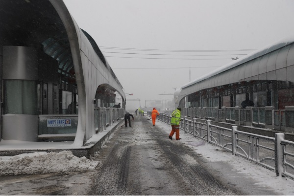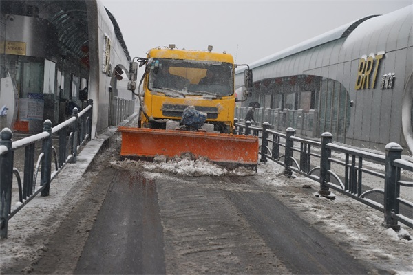 此次掃雪除冰主要采取機(jī)械設(shè)備作業(yè)為主,人工作業(yè)為輔的方式進(jìn)行連續(xù)作業(yè),對(duì)公司所管養(yǎng)新港城大道、G228、G310、S242等多條主要國(guó)省干線、BRT專(zhuān)線和東疏港高速公路等彎道、匝道、橋梁、陡坡等易結(jié)冰、易發(fā)生事故路段的積雪冰凍進(jìn)行重點(diǎn)清除。同時(shí),高鐵站綜合客運(yùn)樞紐對(duì)廣場(chǎng)及車(chē)輛出入口的積雪進(jìn)行了及時(shí)清理,確保進(jìn)出站旅客的安全。