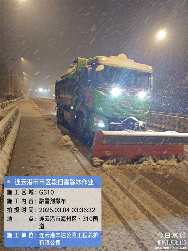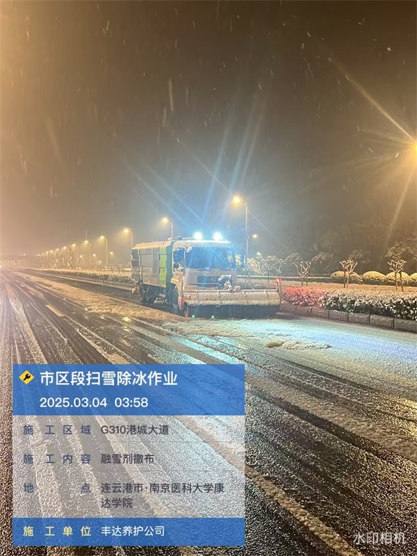 此次掃雪除冰,公司共組織80余工作人員,30余臺套掃雪融雪車輛,對港城大道、徐新公路、海州區(qū)縣道、寧連高速、東疏港高速及G310、G228、G204、省道242進行掃雪作業(yè),撒布融雪劑300余噸。截止早上6點半公司管養(yǎng)道路已全部清掃完畢,路面無積雪和冰凍。