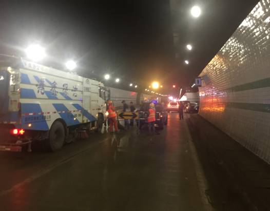 此次演練模擬場景是:一輛載有丙烯晴槽罐車在疏港隧道出港過程中,后側(cè)一貨車由于避讓不及撞上槽罐車,造成追尾事故。事故致使貨車駕駛員被困,槽罐車發(fā)生泄漏,貨車駕駛室內(nèi)人員傷亡情況不明的現(xiàn)場狀況。