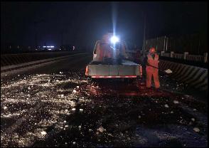 此次除雪防滑工作中,豐達人員不顧嚴寒、頂風冒雪,全力奮戰(zhàn)在除雪一線,對重點公路、橋梁、匝道和上下坡等路段撒布融雪劑和防滑石子等,及時清除路面積雪、積水和冰凍,確保了公司養(yǎng)護路段安全暢通。