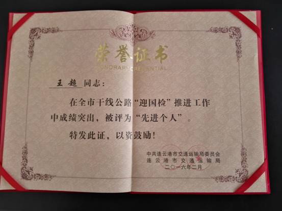 王超同志被評為全市干線公路“迎國檢” 推進(jìn)工作“先進(jìn)個人”