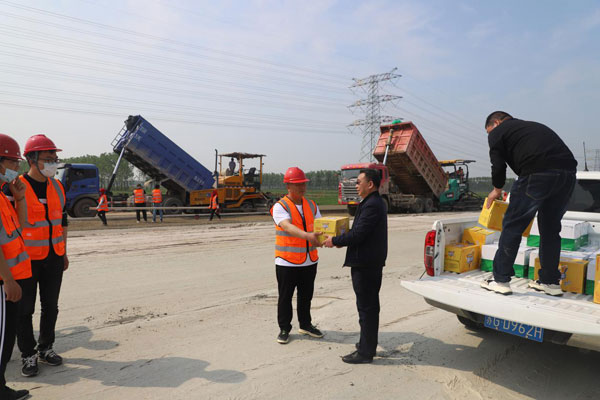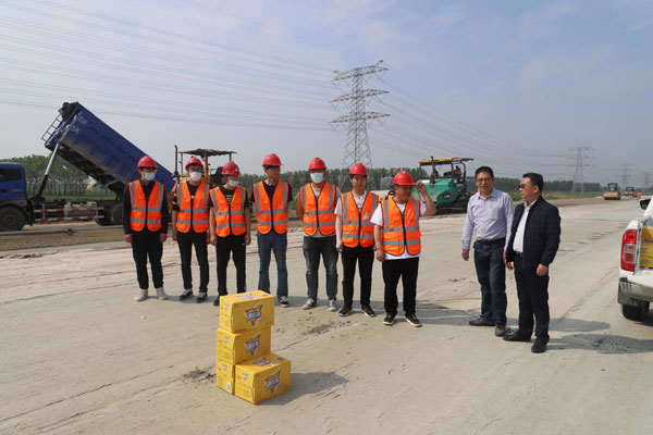 (圖一、二、三為董事長王永生及工會主席李春堯走訪慰問疏港大道工地及工程分公司)