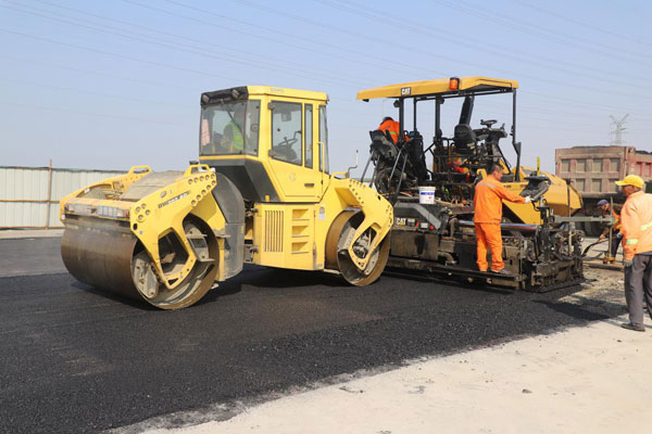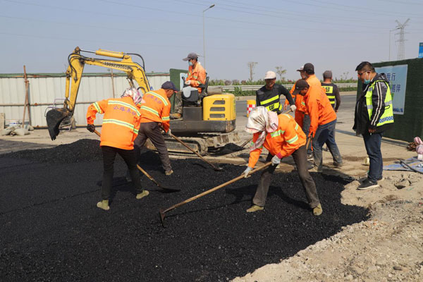 (圖四、五為基層一線職工進(jìn)行道路瀝青鋪設(shè))