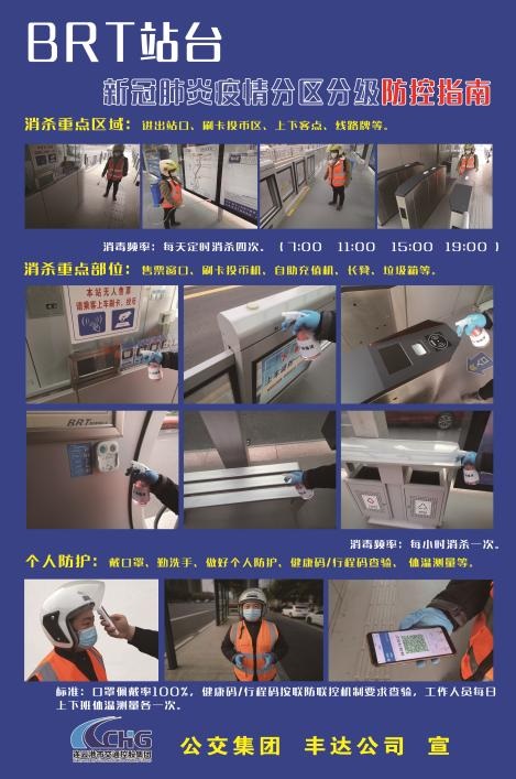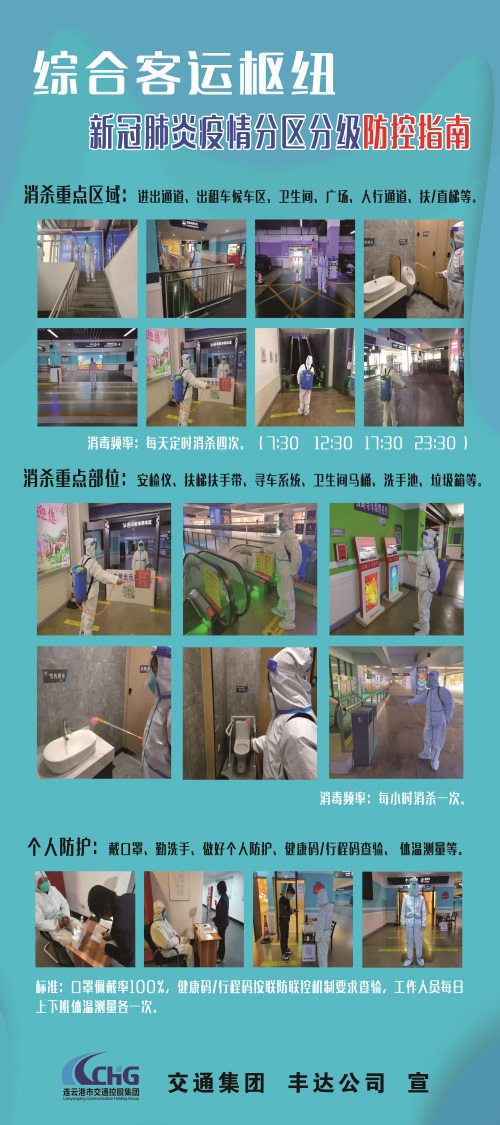 隨著連云港市高鐵站和公共客運交通逐步恢復(fù)運營,為進(jìn)一步筑牢疫情防控防線,嚴(yán)密落實疫情防控措施,規(guī)范從業(yè)人員防控消殺操作規(guī)程,豐達(dá)公司根據(jù)不同物業(yè)管理項目的實際情況,分別制作了綜合客運樞紐、BRT站臺及普通公交站亭《新冠肺炎疫情分區(qū)分級防控指南》展板和海報共計百余張,指南明確了重點區(qū)域消殺時間、重點部位消殺頻率及個人防護(hù)要求。同時公司迅速組織各物管項目從業(yè)人員針對防控指南內(nèi)容進(jìn)行培訓(xùn)教育,通過培訓(xùn)進(jìn)一步提高了從業(yè)人員防范意識,規(guī)范了操作流程,為物管項目疫情防控常態(tài)化提供了保障。