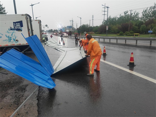 在搶險任務中,公司橙色突擊隊應急搶修人員火速行動,沖鋒在前,他們無懼風雨逆風而行,奮戰(zhàn)在搶險保暢第一線。截止28日上午12時,公司共出動橙色突擊隊員200人次,應急搶險人員187人次,應急車輛113臺次,及時處置路面積水15處,清理倒伏樹木130余棵,清理路面障礙物40余處,修補坑塘120余平方,有效確保了管養(yǎng)道路的安全暢通。