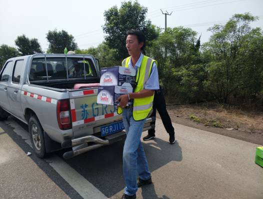 為保障職工安康權(quán)益,促進企業(yè)安全發(fā)展,7月25日,豐達路橋工程分公司組織人員,帶上飲料、礦泉水、綠豆、藥品等防暑降溫物品,慰問在G228工程施工的全體工作人員,為烈日下一線職工們送上一份清涼。
